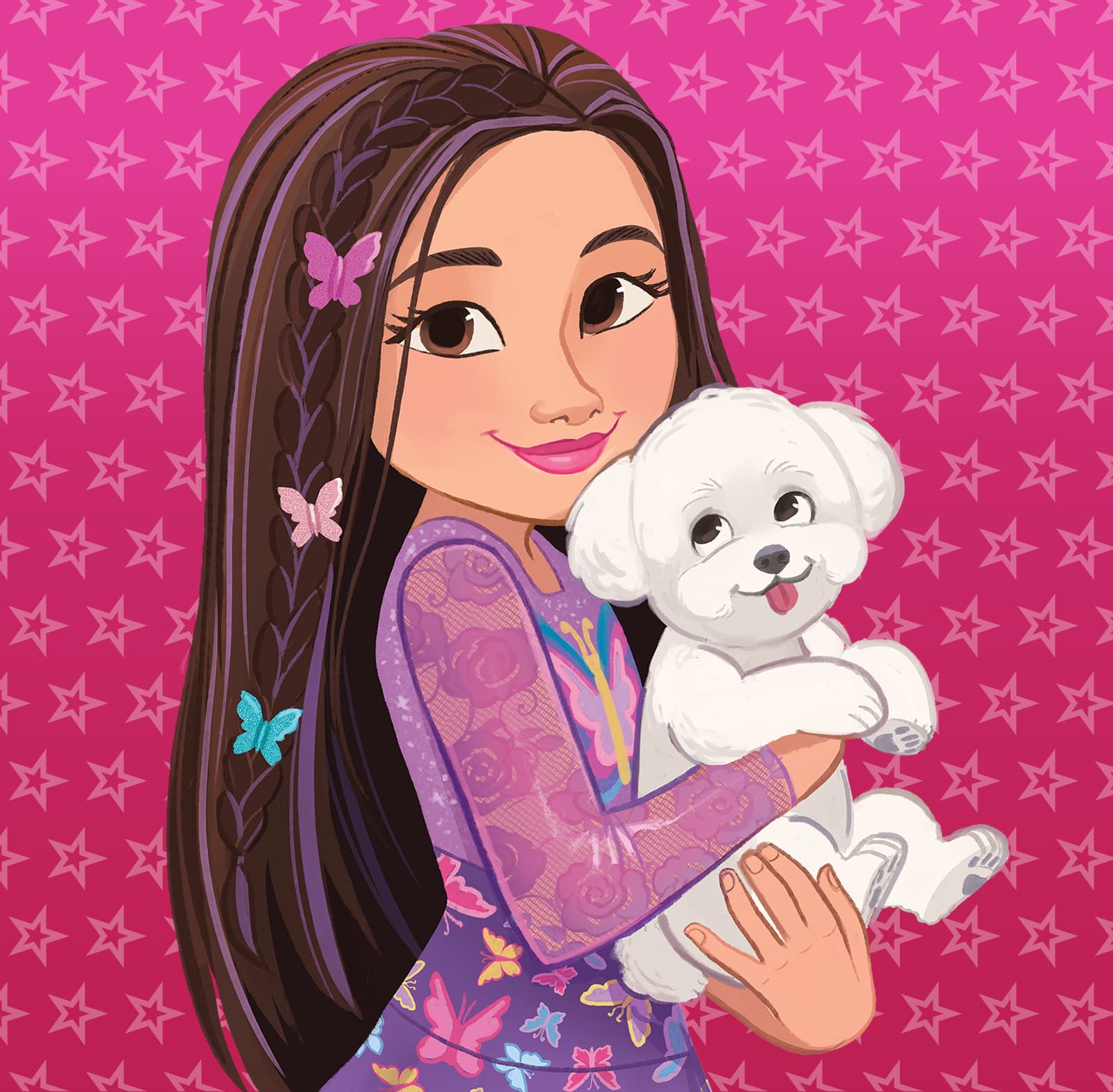 She is a kind and loyal friend, just like her sweet bichon pup, Sugar! She tackles every new task with patience and care, whether crafting something cute for her favorite furry friends or playing a cozy game. She is arms wide open and ready with a hug for any friend in need—two- or four-legged.